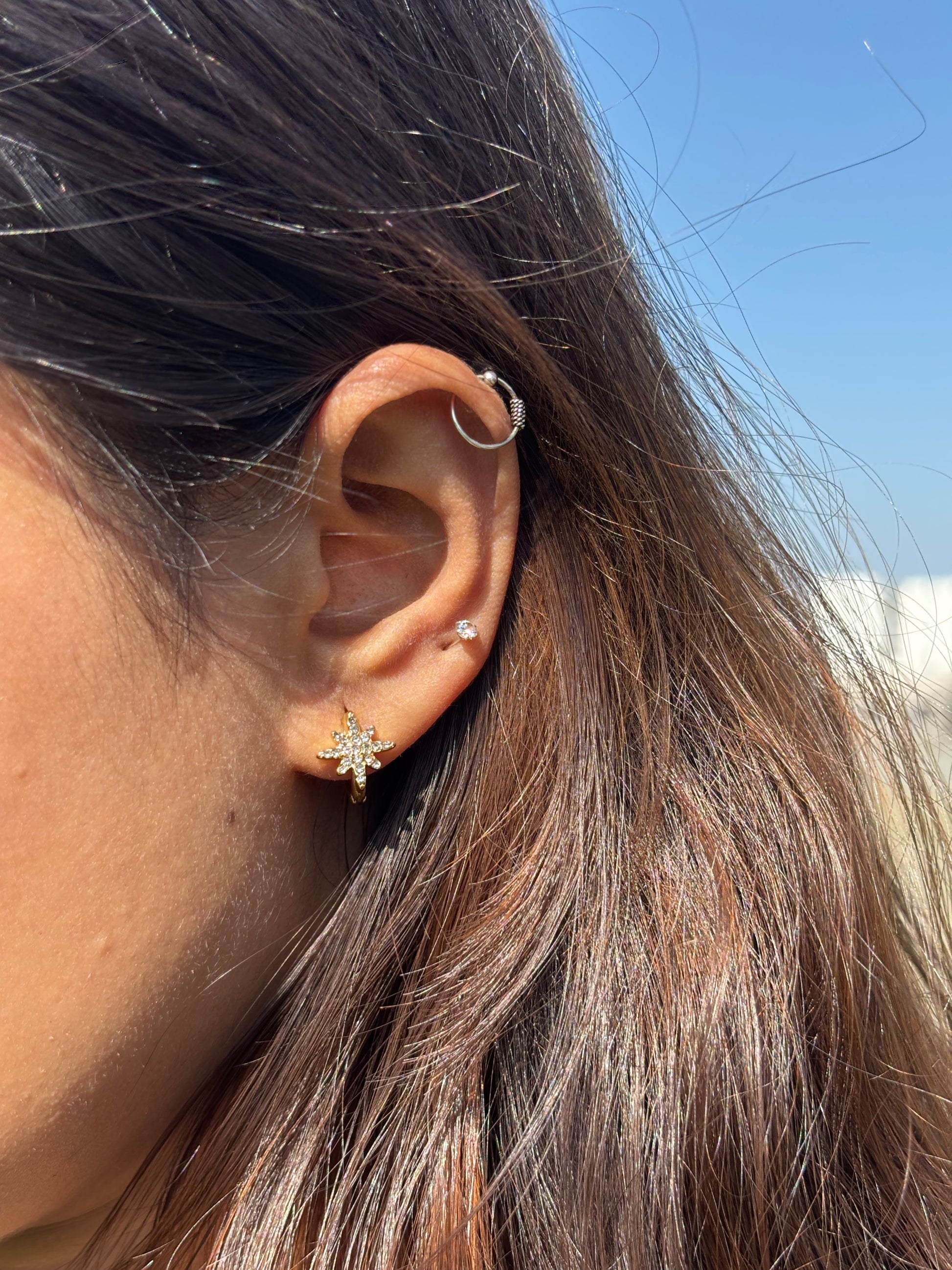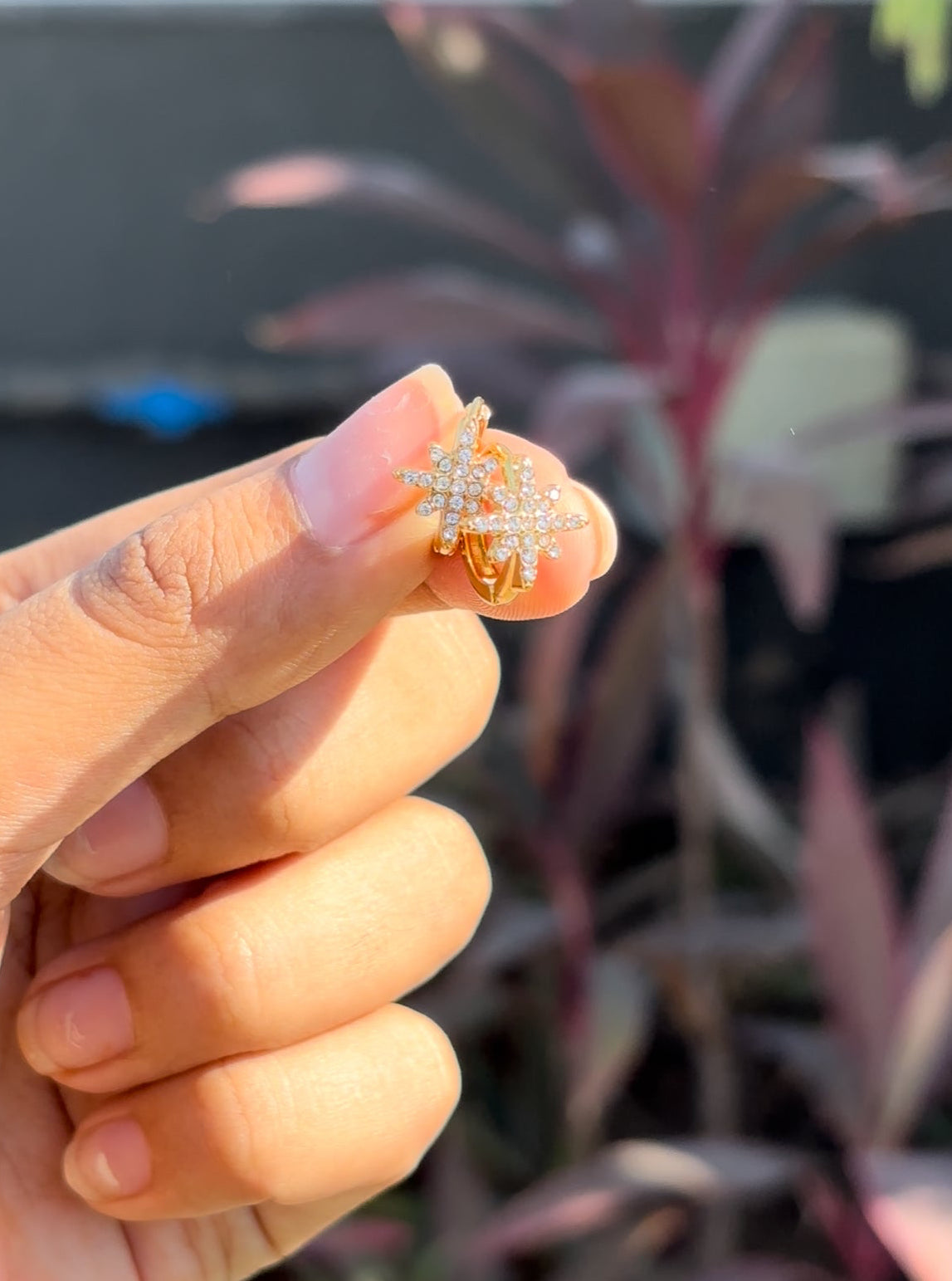 Finished with sparkling crystal star motifs, these hoops are designed to catch the light (and compliments!) instantly. Your new go-to for dates, brunch, college, or casual glam.
