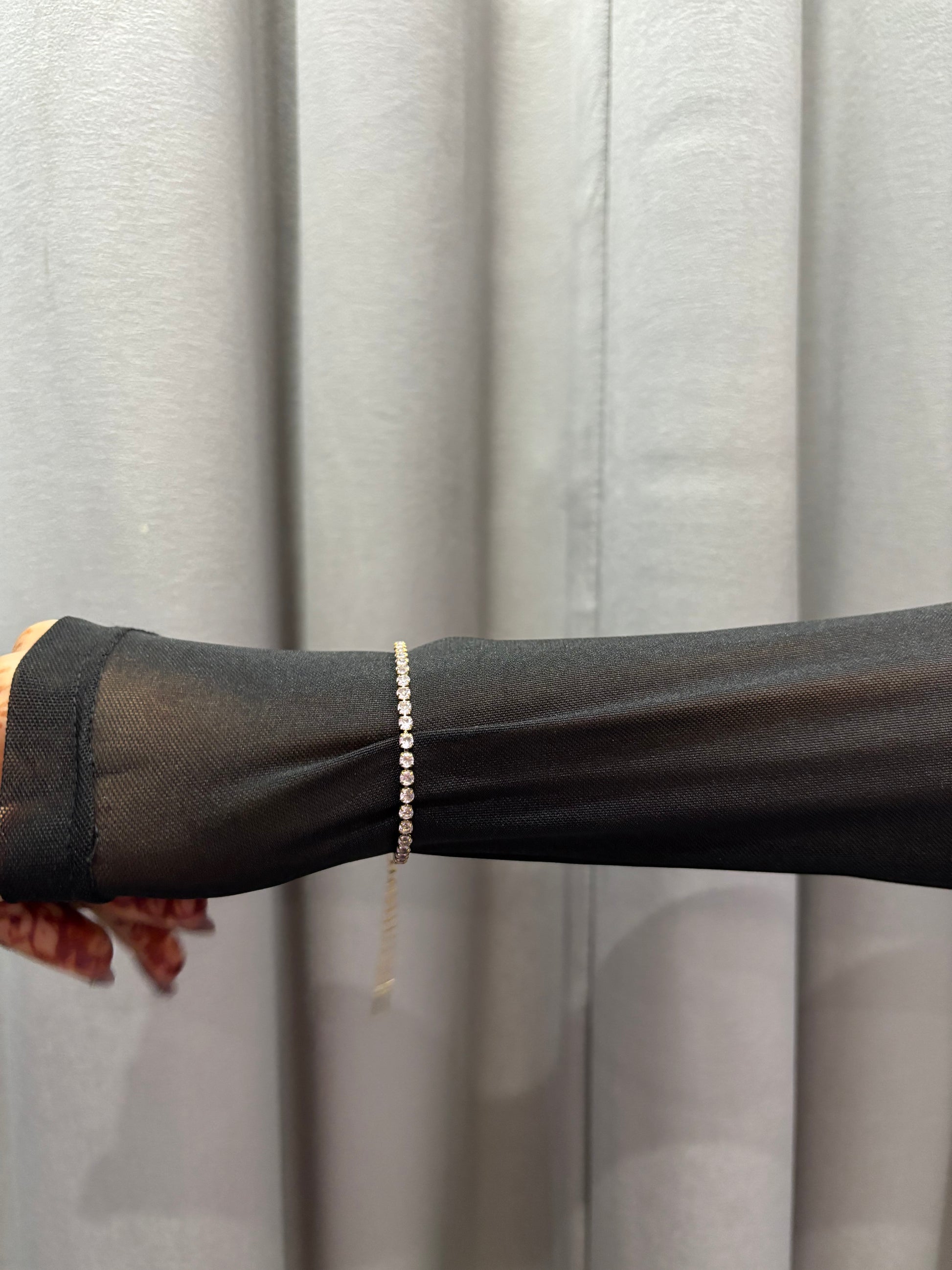 A delicate line of blush-pink stones crafted to sparkle with every move. Lightweight, timeless, and designed for everyday elegance, this bracelet adds the perfect feminine touch to any outfit. Wear it solo for a subtle glow or stack it for that effortlessly luxe look.